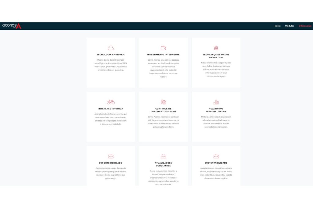 Um exemplo de sistema comercial utilizado por empresas distribuidoras é o Aconos, um ERP em nuvem que reúne módulos voltados para vendas, estoque, financeiro e emissão de documentos fiscais.